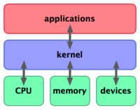 A Kernel is the central component of an operating system, but usually not the largest. It is responsible for the communication between hardware and upper-level software and thus makes the hardware, like CPU and memory, available to all other software running on the computer.