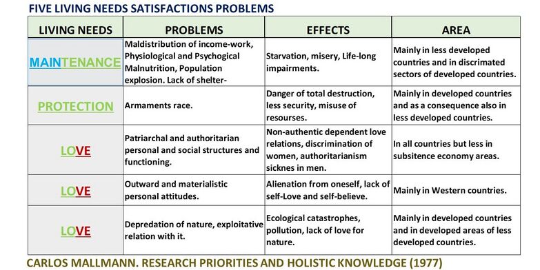 - Inspired by Mallman, the work of Manfred Max-Neef on Fundamental Human Needs