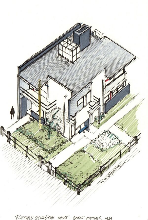 6 - Axonometric drawing of De Stijl architecture, Gerrit Rietveld (drawing © Diego Inzunza)