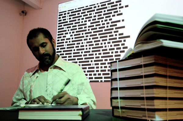 Love, Piracy, a work by artist duo Ambient TV (Manu Luksch & Mukul Patel), is about censorship politics. It takes as its subject the transcript of an interview conducted by Patel with Iranian philosopher Ali Alizadeh. This 1,500 word text – itself about the history of censorship in Iran – has been reproduced 1,500 times. In real-world installations, people join together, taking turns to censor the text: blocking it out word-by-word. However the rules set for the censor are such that a different word is left visible in each copy. As a result, no single version of the text offers more than a trace of its content but collectively, they present it in its entirety. In an online adjunct to this act, owners of these censored copies are invited to add the revealed word in their redacted script to a publicly accessible website. Over time, the inputted words will allow a complete version of the text to exist online as it is rebuilt by the disparately located network of reader/sharers. Described as an exercise in ‘collective reading’, where groups have come together to redact the script, it requires the same collaboration to reveal it once more.