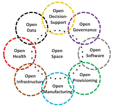 The term Open Source Ecology was popularized by Marcin Jakubowski, founder of the non-profit by the same name, and architect of the Global Village Construction Set. This term, while applying largely to the unified application of machines and materials to the intersection of energy, water, food, and shelter, can and should be applied to all nested groups of opens including those at the more developed intersection of communications, computing, digital transactions, education, and (self) governance.