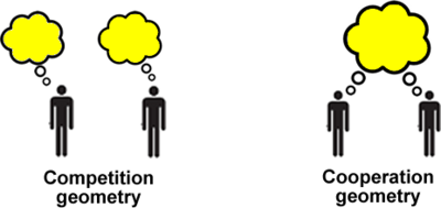 Let's use geometry to define cooperation. When two persons share the same objective they are cooperating, when two persons have different objectives they are, soon or later, competing.