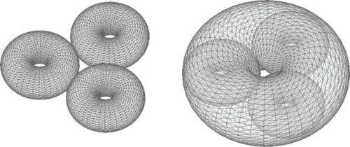 In mathematics this relation is called symmetry, in biology it is called symbiosis and in eastern philosophy it is called duality. They influence each other but they keep their identity. Both torus can create a new identity to be seen as one. This would create a new torus and a new higher level group consciousness.