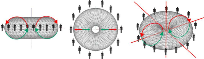 The torus is definitely a very curious shape, it appears everywhere. It is not surprising that we can use it to improve big scale cooperative groups. From now the decision is personal: go on trying to fix this actual global organization, or be part of a new one.