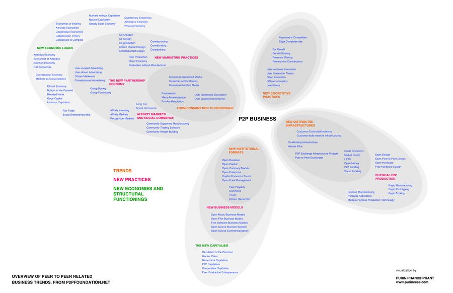 A map with a conceptual overview of the peer to peer business space. Every concept in the map is searchable via our wiki search box on the upper left.