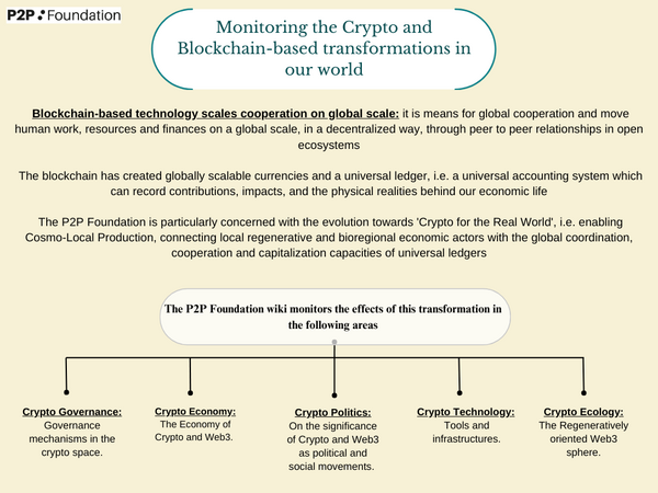 For a quick introduction to the P2P Foundation see our new homepage. For an introduction to our worldview, see the Commons Transition Primer website.